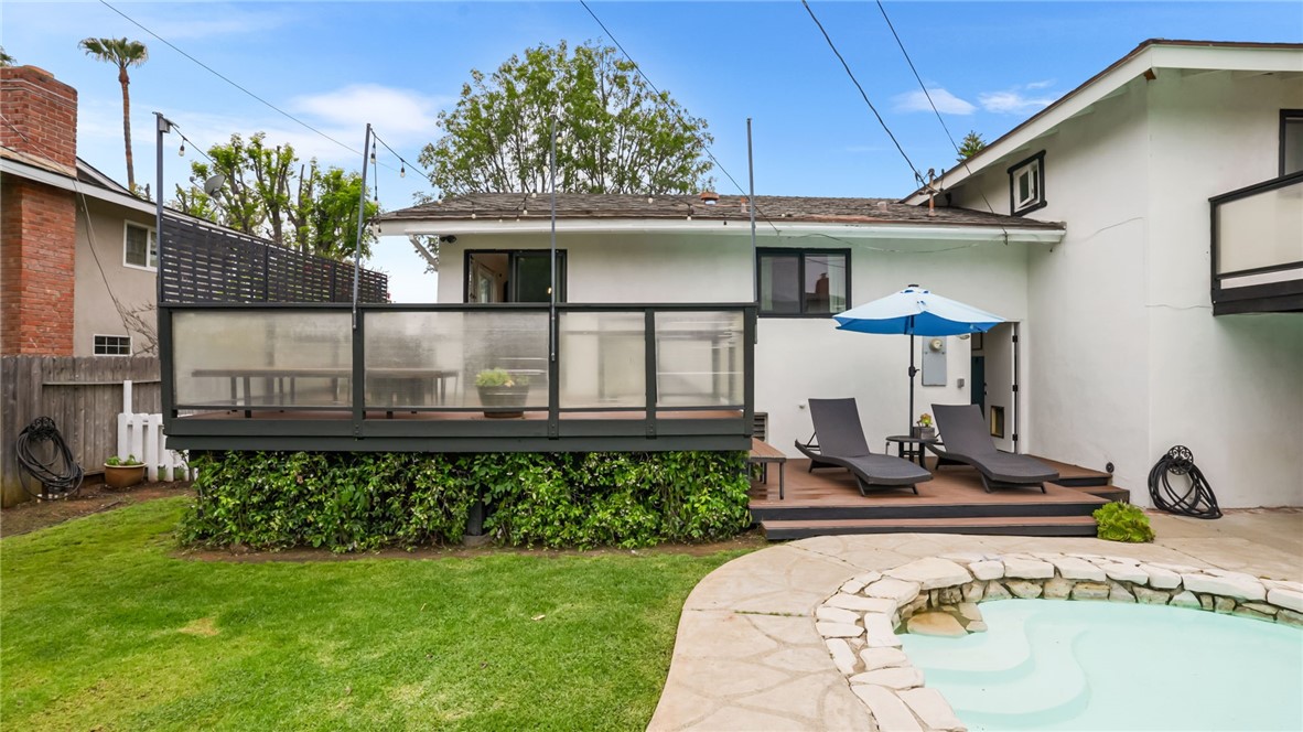 Welcome to 13402 Wheeler Place in North Tustin -- a charming updated 4-bedroom, 3-bathroom Meredith home that blends comfort, style, and functionality in a great sidewalk-safe and friendly neighborhood. Set on a spacious 10,920 sq ft lot, this 2,138 sq ft home offers a bright and open layout perfect for both everyday living and entertaining. A beautiful mature tree in the front yard creates standout curb appeal and offers generous, peaceful shade. A reclaimed wood wall entry adds a touch of warmth and character right from the start. The home's hardwood floors flow through the main living areas, and brand-new carpet warms the family room and bedrooms. Fresh interior paint and several new windows fill the home with natural light while boosting energy efficiency. The remodeled kitchen is the heart of the home, featuring an oversized island with seating, quartz countertops, stainless steel appliances, and plenty of storage. It opens to the dining area and a welcoming living room with a large picture window and views of the front yard. Just off the kitchen, a raised deck warmed by a gas firepit overlooks the backyard --complete with an oversized rock pool, grassy play area, and raised garden beds perfect for herbs, veggies, or flowers. The generous family room includes a custom built-in workstation and sliding doors leading to the patio for seamless indoor-outdoor living. Upstairs, the private primary suite features its own balcony and an updated ensuite bath, while three additional bedrooms and another refreshed bathroom provide space for family or guests. A rare bonus feature of this home is an unfinished basement--ideal for a custom gym, office, studio, or anything your lifestyle calls for. Other highlights include an attached two-car garage with RV access--perfect for extra vehicles, gear, or weekend adventures. Zoned for top-rated Tustin schools, this home is move-in ready and full of warmth. Come experience the feeling of home!
